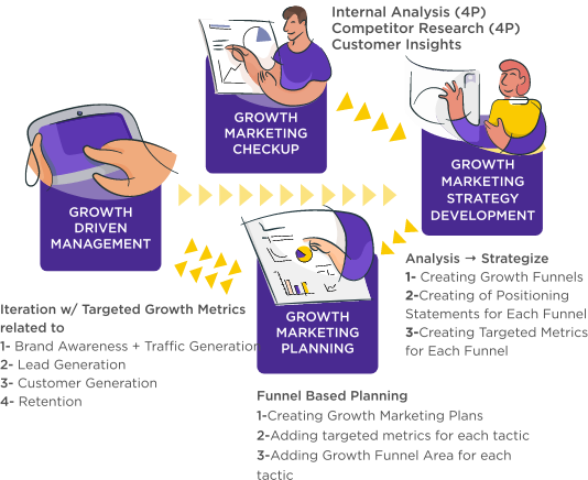 When the products, services, and positioning were identified, our growth marketing team completed the following: