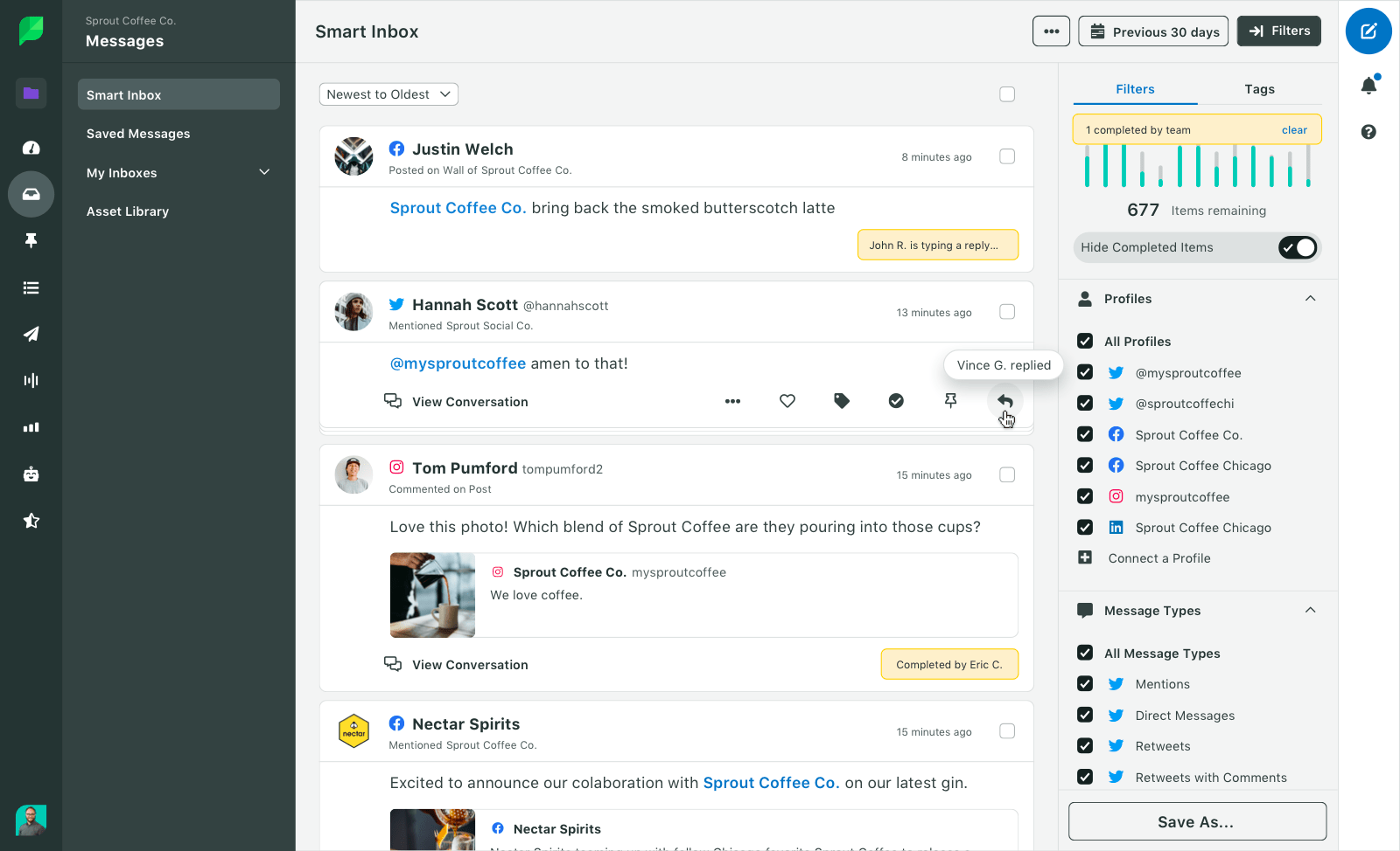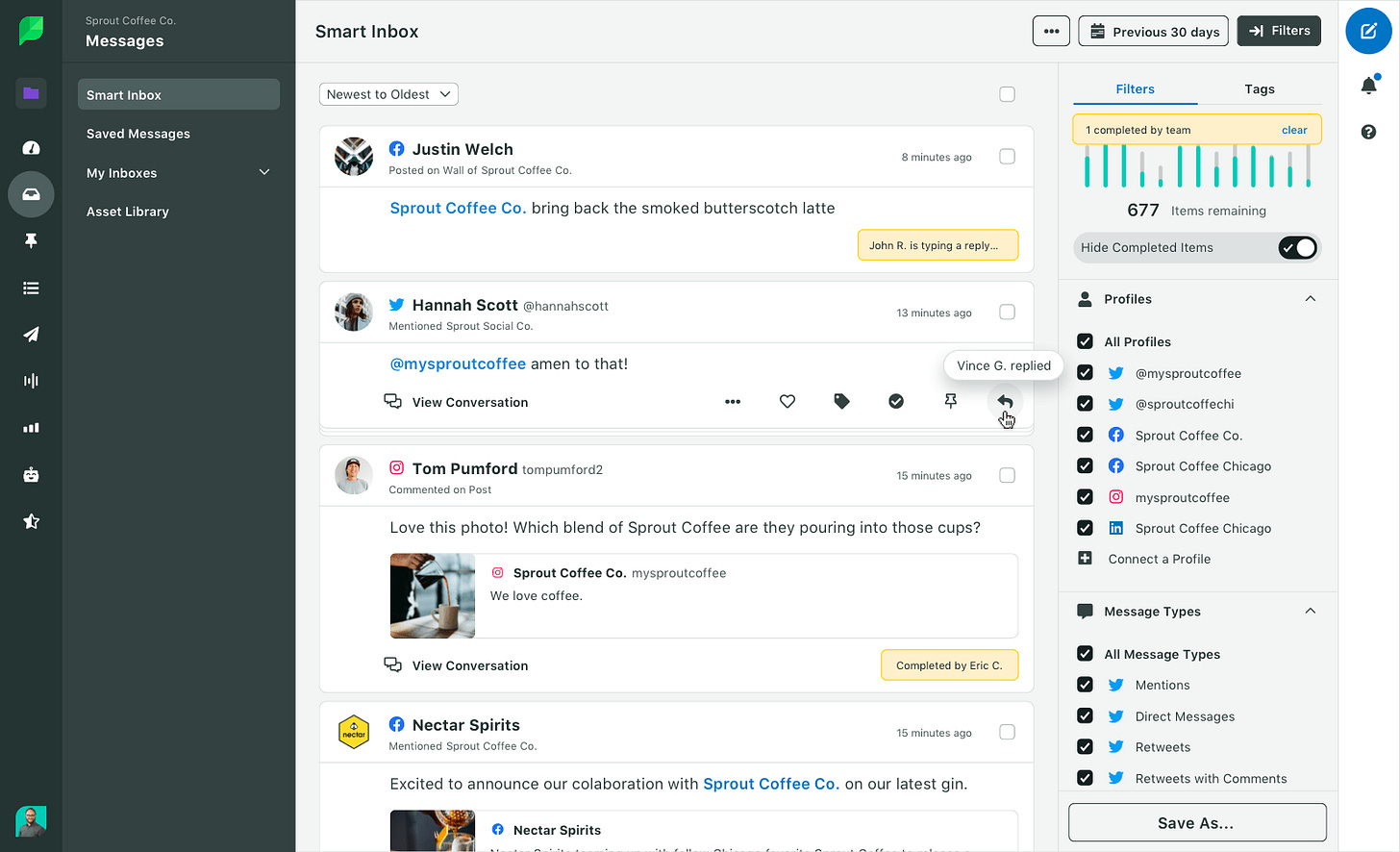 Moreover, the Spike Alert feature notifies your team of rapid increases in message volumes and allows you to quickly respond and take control of any situation. You can also get team performance reports on how quickly your team members are responding to social messages. When it comes to social media engagement, Sprout Social enables your team to manage all social activity from a single deck and leave no incoming messages unanswered.