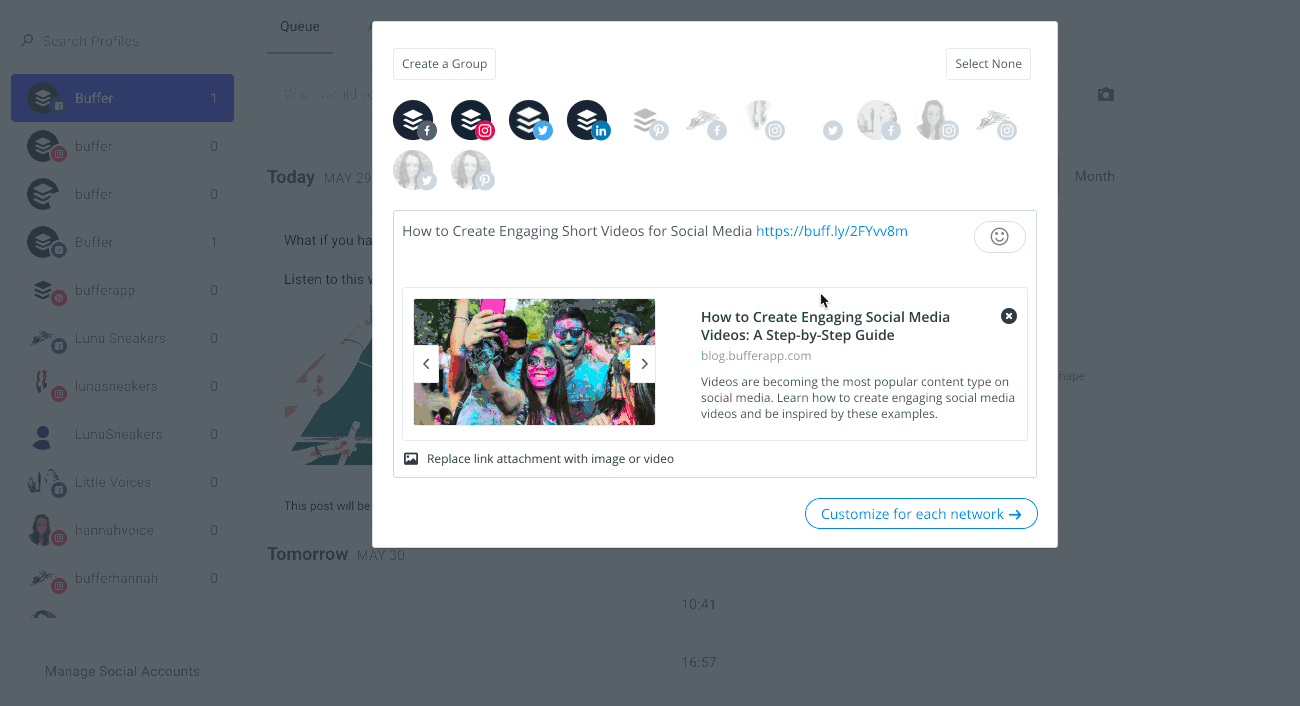 Buffer is one of the oldest and most popular social media management tools used by agencies and small to medium businesses. It offers a free plan where you can connect up to three social accounts and schedule up to ten posts.