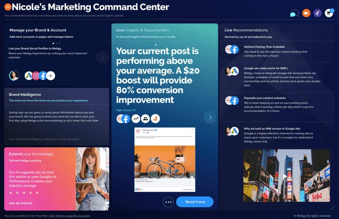 Metigy is best for: SME marketers, agencies, real-time insights and recommended actions