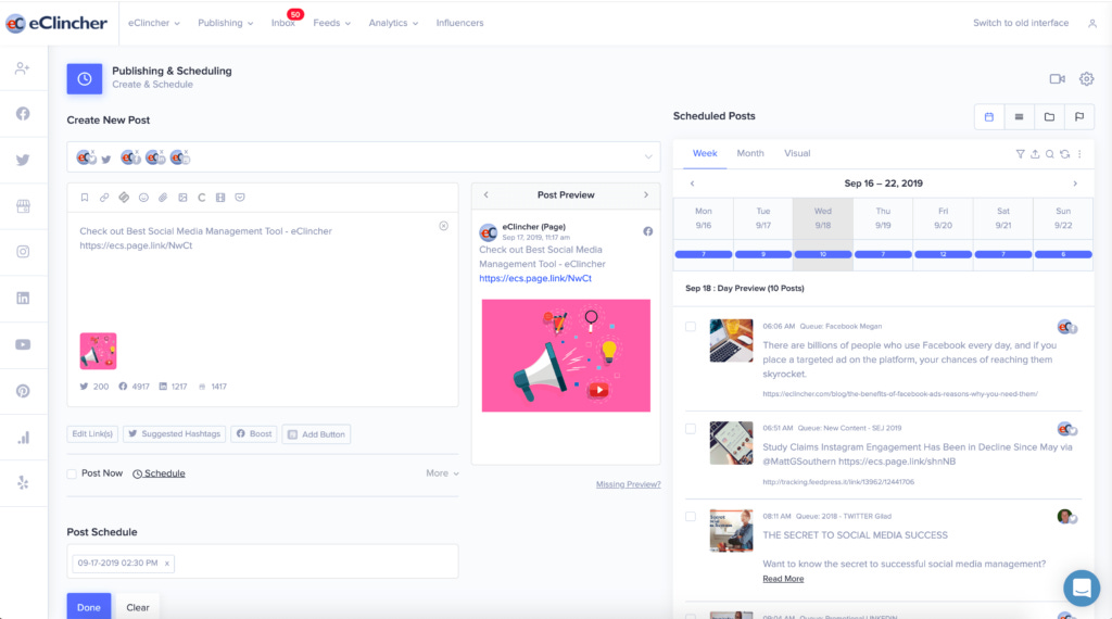 eClincher is best for: Auto post, RSS integration, and influencer discovery.