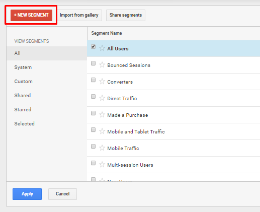 If the current segments don’t meet your needs, you can also create a new segment yourself and filter the user data according to your goal. For example, you may want to analyze only traffic from a particular country or the data of users who come to the site using mobile devices.