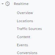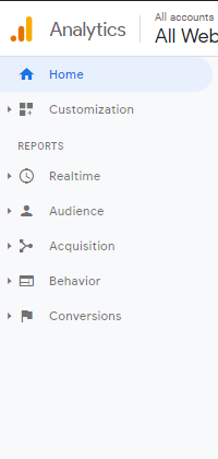 Google Analytics reports consist of five main sections. You can see them on the report menu as shown below: