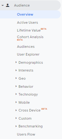 This tab helps you to analyze the audience on your site. The sub-tabs are as follows: