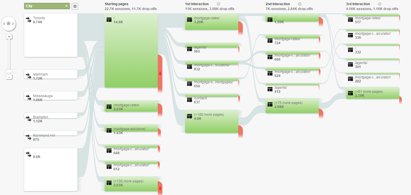 Users Flow: This report provides a visual representation of how users act on your site. You can easily analyze which page users switch to, and from which page they leave your site. You can optimize your site with this information.