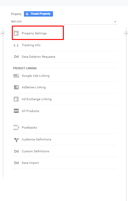 1- Sign in to your Google Analytics account and click on the property settings.