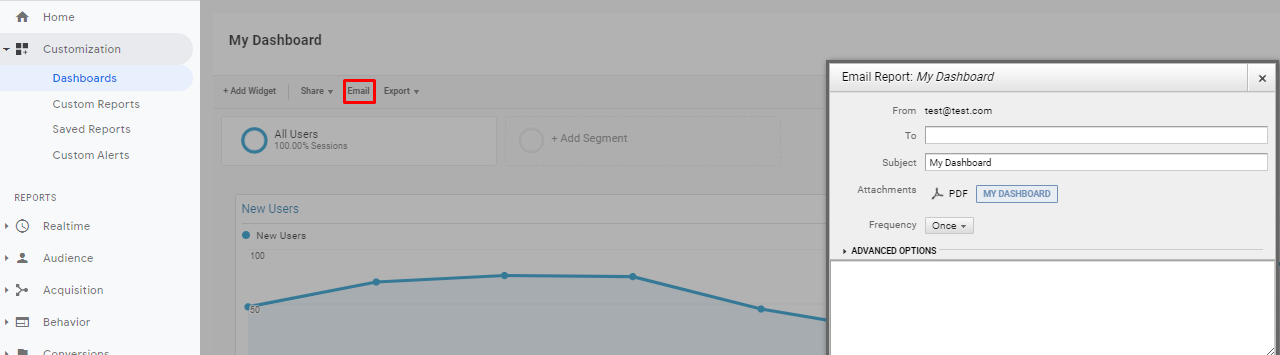 One of the best features of Google Analytics is that its dashboard can be customized according to the necessary data you want to monitor for your business. To customize your dashboard: