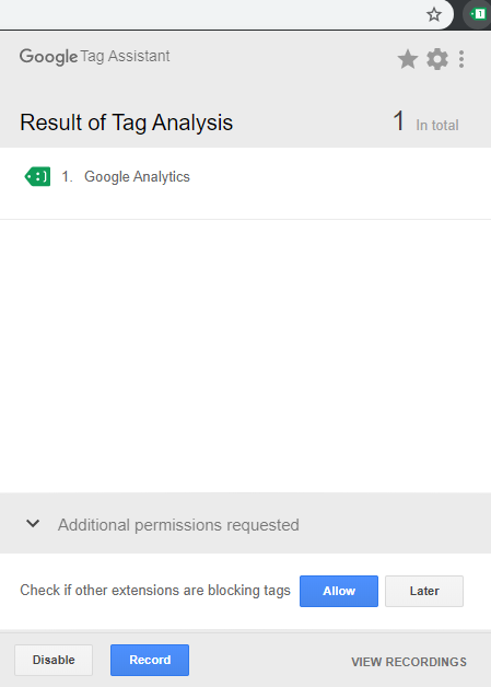 3- Check if the code is installed correctly with the Tag Assistant (by Google)– a Google Chrome browser plugin.